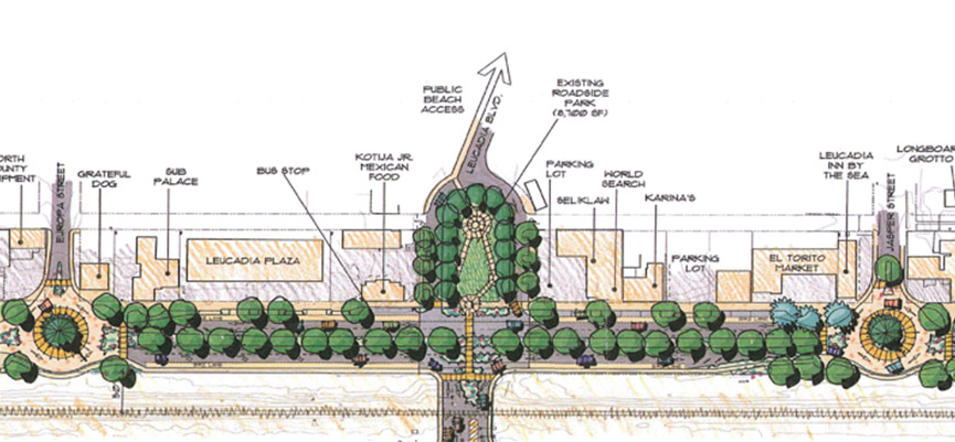 LLG coordinated with urban designers, the Cities of Encinitas and Solana Beach and citizens to develop various alternatives for the proposed Highway 101 Streetscape project. The purpose of the project was to incorporate walkable community concepts, traffic calming and a balance of right-of-way needs associated with pedestrian, bicycle and vehicular circulation, and the aesthetic quality of the corridor. Various factors such as number of lanes, travel speeds, walkways and bikeways, street furniture, ADA compliance, pedestrian exposure to traffic, intersection control and parking were considered.