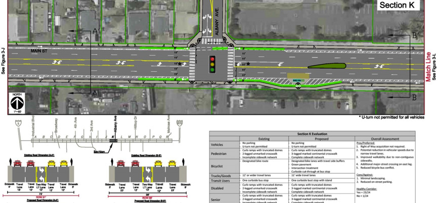 LLG was retained by the City of Chula Vista to provide a “Complete Streets” assessment of a 2.5 mile stretch of Main Street. The focus of the masterplan is to provide a safe, efficient, aesthetically pleasing corridor with convenient access to all eight user groups – pedestrians, bicyclists, vehicles, truck/goods, disabled, children, elderly, and transit. LLG analyzed the intersection operations, evaluated the feasibility of roundabouts and roadway configurations, and evaluated various design elements for all eight users. Recommendations included, buffered bicycle lanes, reduced lane widths, landscaped medians, bus shelters, non-contiguous sidewalks and many others. LLG also developed a healthy corridor assessment checklist for Main Street and identified potential funding sources.